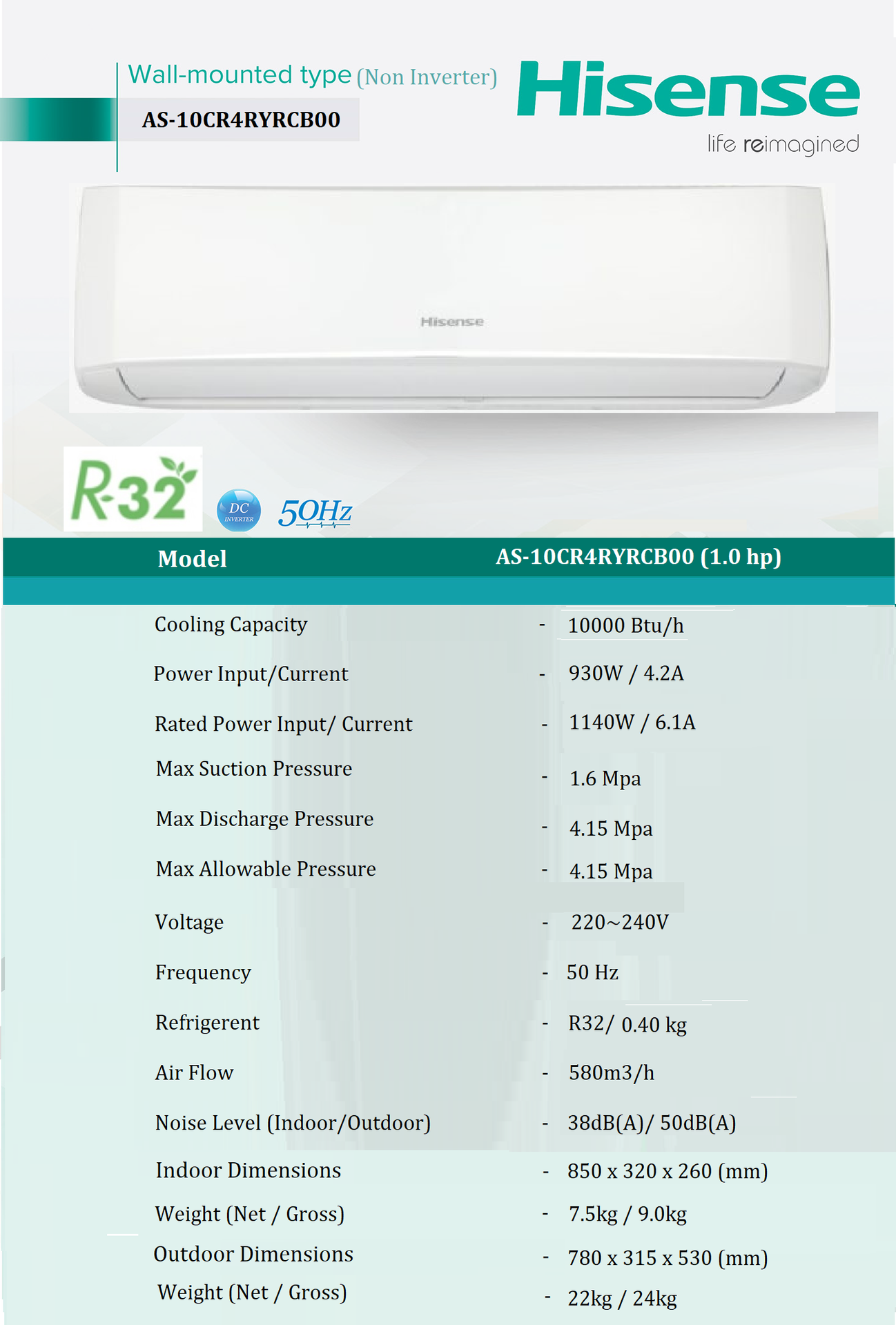 Hisense AS-10CR4RYRCB00 (1.0HP NON-INVERTER TYPE)