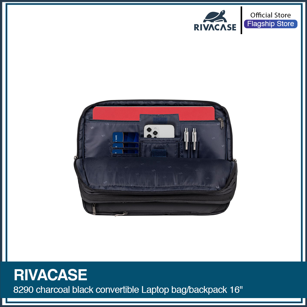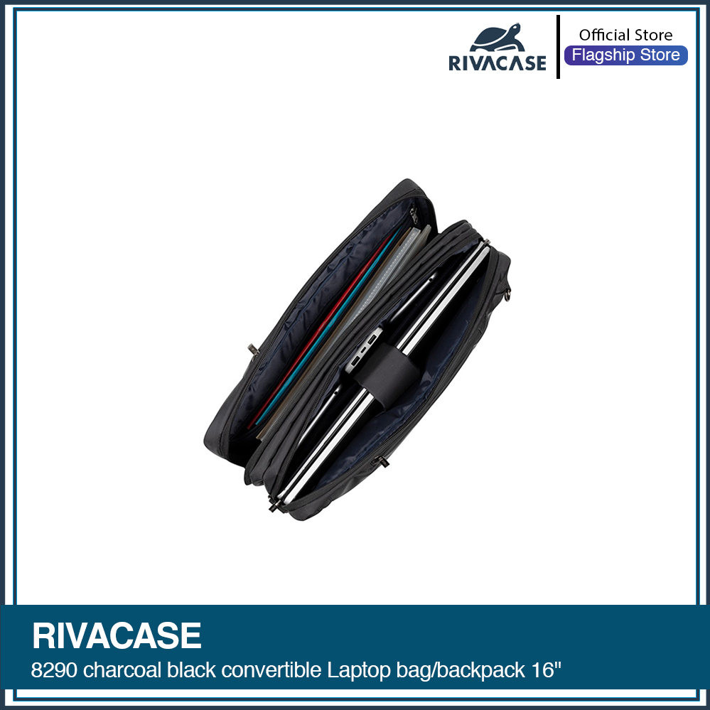 RIVACASE 8290 charcoal black convertible Laptop bag/backpack 16″